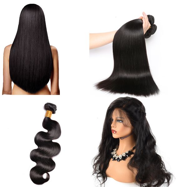 10a malaysian hair 100% unprocessed brazilian bundles virgin human hair 1 piece peruvian straight and body wave natural color, Black