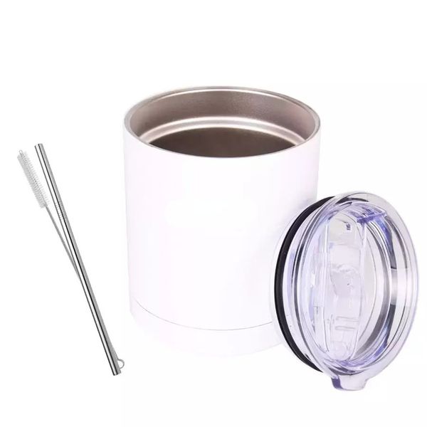 10oz sublimation lowball cup travel mug straight tumbler 18/8 stainless steel double wall vacuum therm drinkware with lid straw gg0213