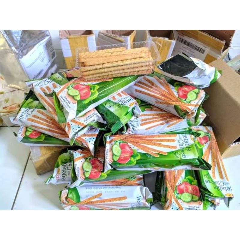 Biskuit Vegetable Cheese Stick produksi Biskitop sekarang menjadi sangat populer dan laris manis dikalangan masyarakat karena kandungan gizi serta mineral dari sayur-sayuran dicampur dengan keju yang dibutuhkan oleh tubuh kita. Ibu-ibu telah pintar untuk memilih snack terbaik untuk anak-anak tercinta.