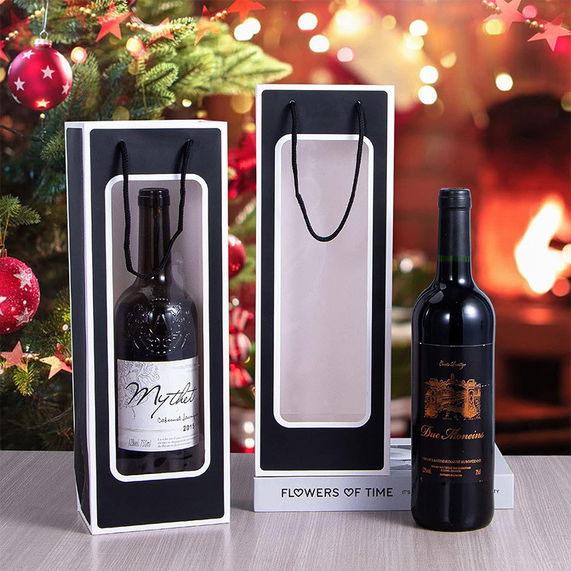 10pcs Red Wine Paper Bag Handbag Window Transparent PVC Kraft Paper Wine Handbag Flower Doll Rectangular Gift Packaging Bag