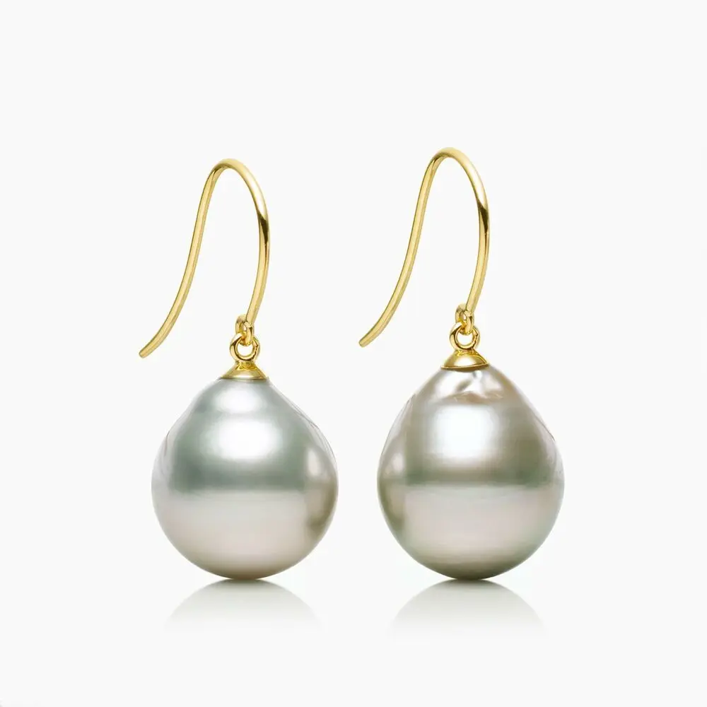 11 × 13 мм серебряные серьги-подвески с таитянским жемчугом в соленой воде, желтое золото 18 карат