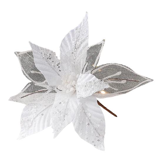 11 Рождественские Искусственные Цветы Блестки Пайетки Пуансеттия Цветок Ткань Искусственные Цветочные Пики для Украшения Рождественской Елки Свадьба День Рождения Венок Декор белый