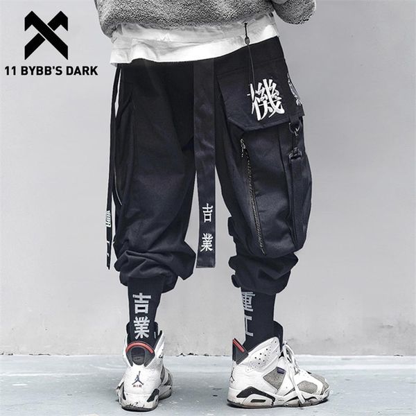 11 bybb's dark multi pocket hip hop pants men ribbon elastic waist harajuku streetwear joggers mens trousers techwear pants 201116, Black