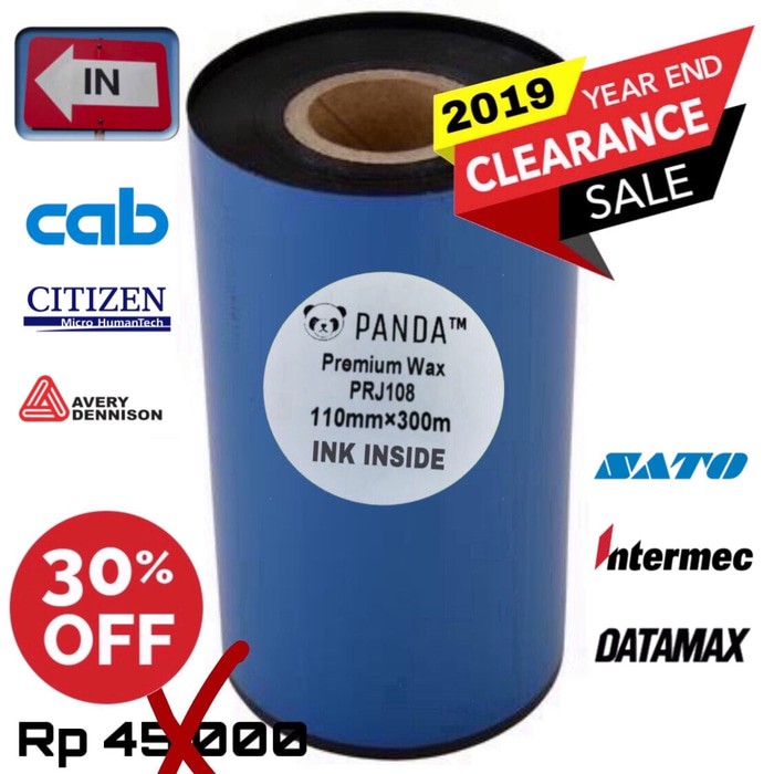 110mmX300m Barcode Ribbon Wax (Face In) Panda Thermal Transfer Ribbon