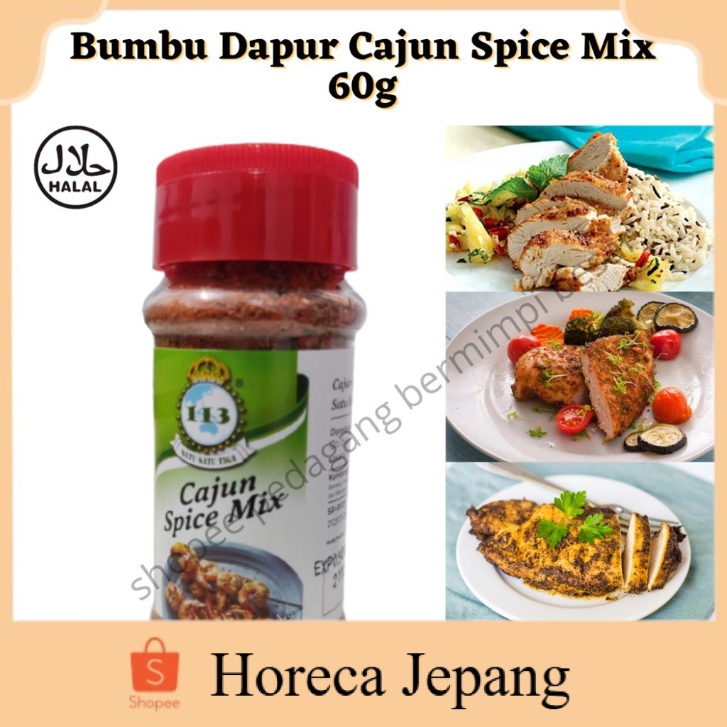 Cajun seasoning merek 113 cocok untuk dipakai pada ayam bakar, udang, kerang, dll.