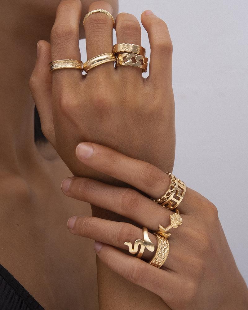 11PCS Serpentine & Floral Design Rings Set, Gold