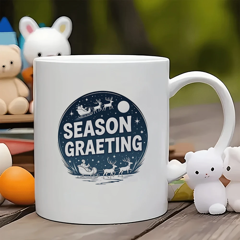 11oz Cup + Christmas Gift - Snowscape Reindeer Mug Kids Water Cup Family Office Coffee Cup Christmas Themed Cup