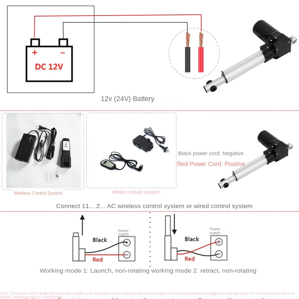 12В 400 мм 1000N 42 мм в секунду IP54 домашний электрический поворотный привод постоянного тока