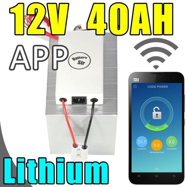 12 в 40ah литиевая батарея приложение дистанционного управления bluetooth электрический велосипед солнечной энергии аккумулятор скутер ebike
