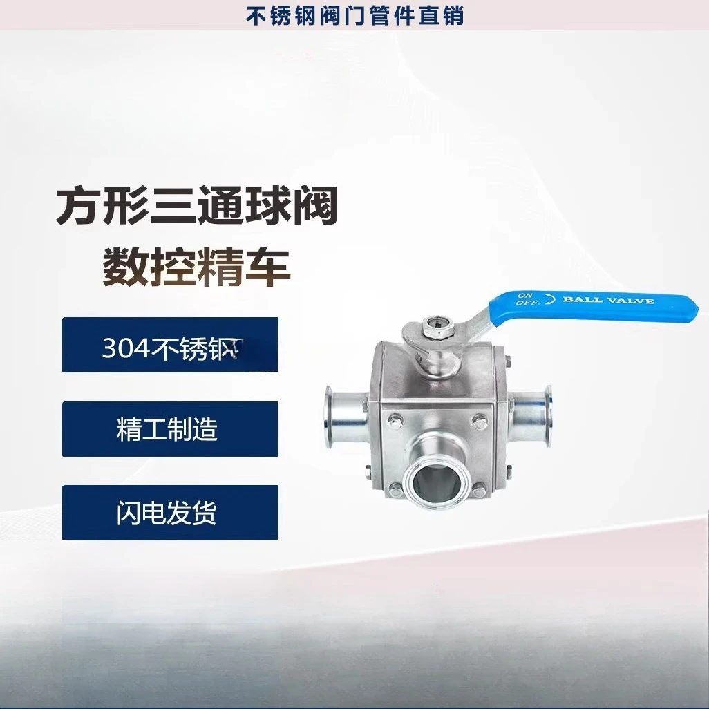 Sanitary grade 304 stainless steel manual square three-way ball valve T-type/L-type quick-loading clamp