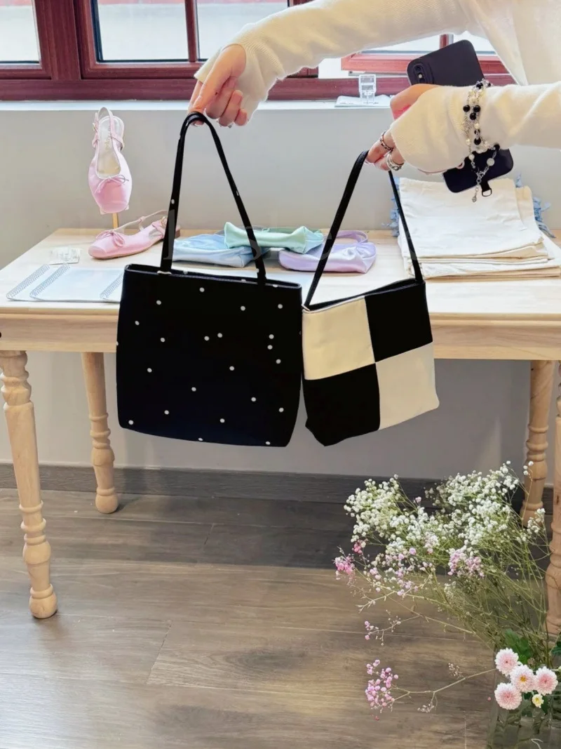Bla Polka Dot Hai Handbag Retro Square Bag Single oulder Bag High-End Sense Music Score Satin Breadth Universal Purse