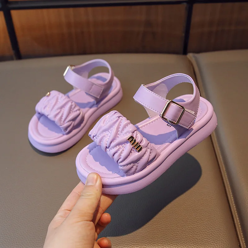 Girl Ruffles Sandals Open Toes Little Kid Hoop & Loop Shoes 2023 Child Baby Fashion Flat Sandal 23-37
