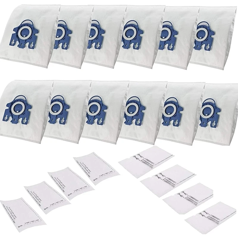 12 мешков для пылесоса + 8 фильтров, совместимых с HyClean Miele GN 3D 10408410, мешков для пылесоса Classic C1