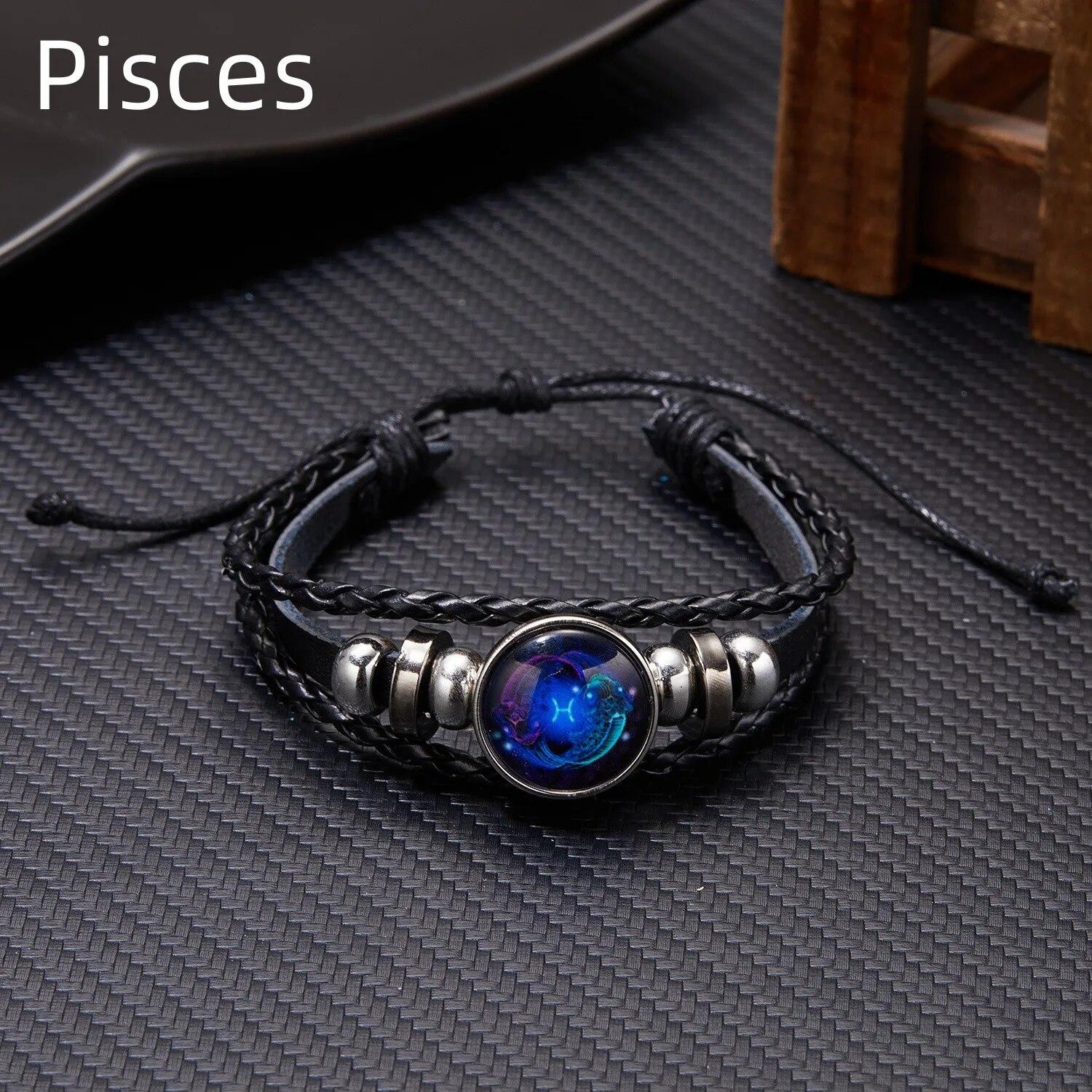 12 созвездий, знак зодиака, очаровательные светящиеся браслеты для мужчин и женщин, винтажный многослойный кожаный браслет и браслет, подарок на день рождения