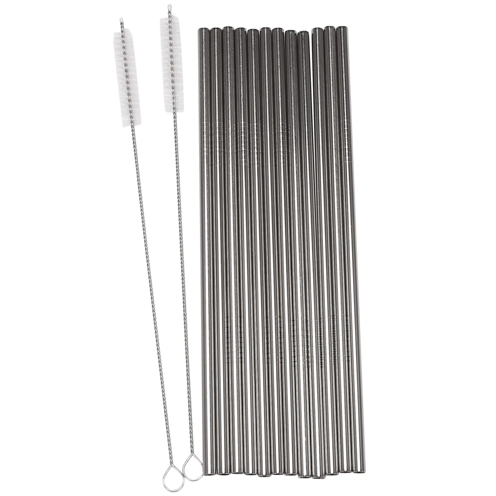 12, соломинки из нержавеющей стали, искусственные, прямые Соломинки + 2 чистящих щетки
