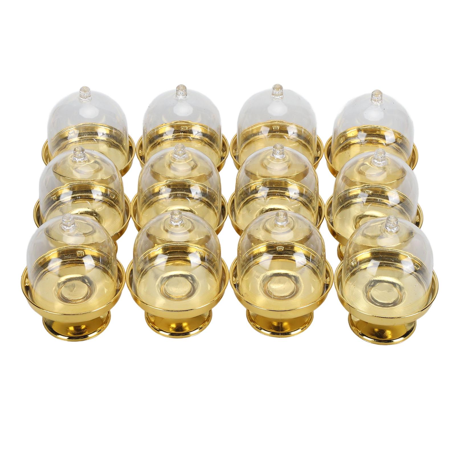 12 шт. Мини-тарелок для торта с крышкой, пластиковая подставка для мини-торта с купольной крышкой, прозрачная маленькая витрина для торта золотой