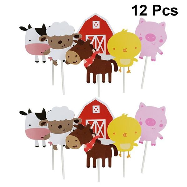 12 шт. день рождения топперы топперы пирожные карта милая ферма маленькие животные торт топперы украшения фруктов выбирает jllusn