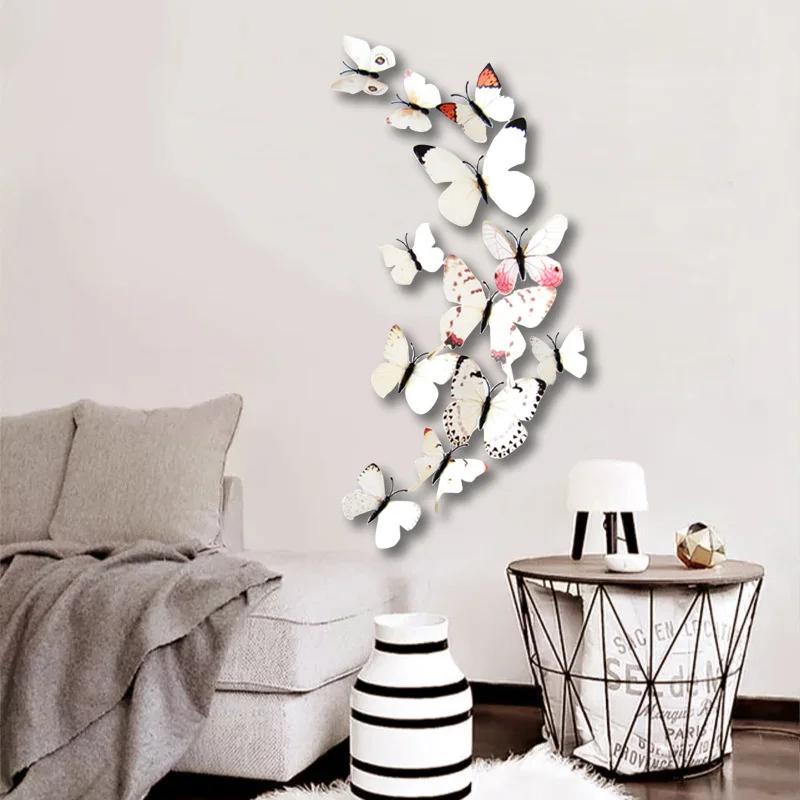 12 шт./компл. белые наклейки в виде бабочки, цветущего персика, украшение для стены дома, гостиной, спальни