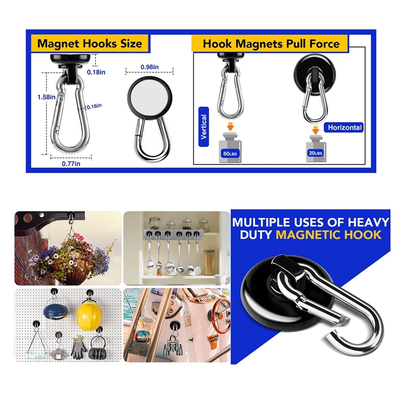 12 шт. прочные магнитные крючки, магнитные крючки с карабином, магнитные крючки подходят для кухни, подвесной круиз-гриль, холодильник