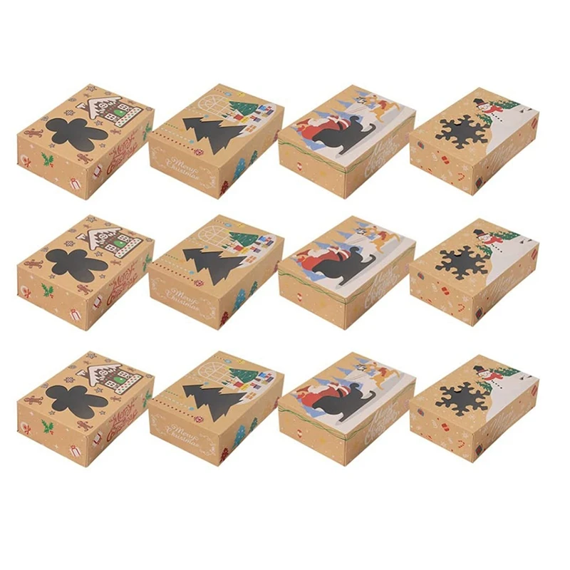 12 шт. рождественские коробки для печенья с окошком, праздничные коробки для пекарни, подарочные коробки для кондитерских изделий, конфет, су...