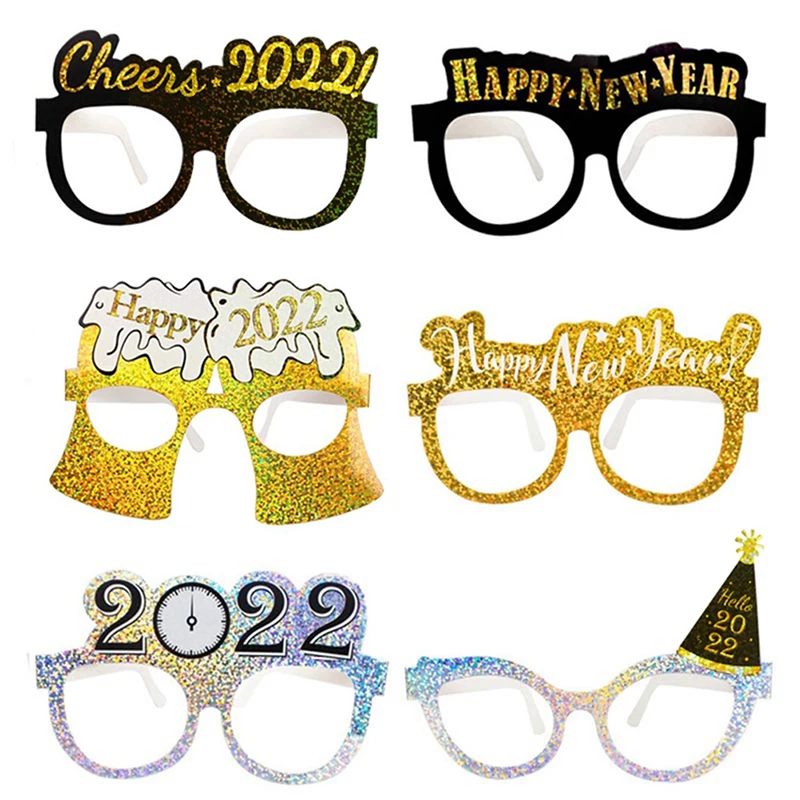 12 шт. 2022 с новым годом блестящие бумажные очки канун фестиваль фоторамка реквизит Дети Взрослые Рождество