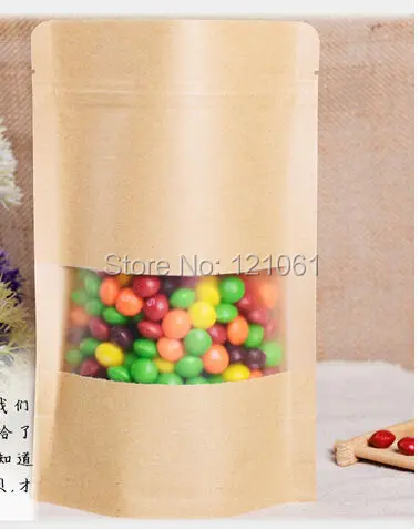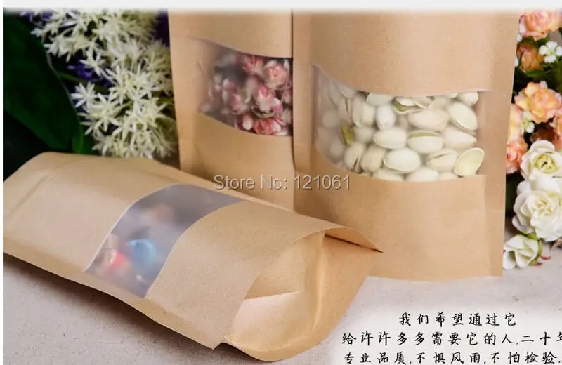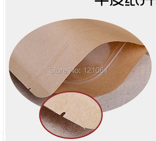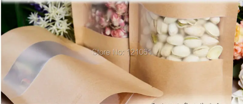 12*20 см, 100 шт./лот, стоячий пакет из крафт-бумаги с окном, пакет из крафт-бумаги на молнии, пакет из крафт-бумаги