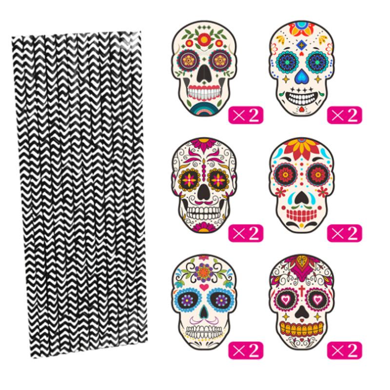 12/24 шт. мультяшные черепа из бумаги для питья соломинки для сока одноразовые трубочки для мексиканского Дня мертвых украшение на тему Хэллоуина