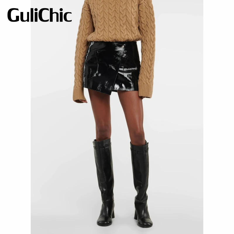 12,3 г., GuliChic, женская модная черная нестандартная мини-юбка из натуральной кожи
