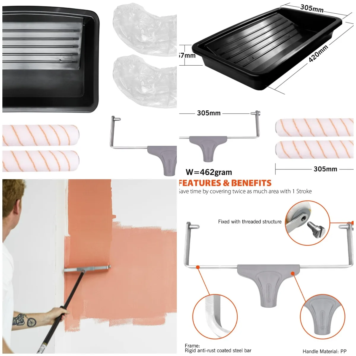 12 Inch Paint Roller Kit - 2 PC Polyester Covers with Frame & Tray, 6-Pack for Home DIY Painting