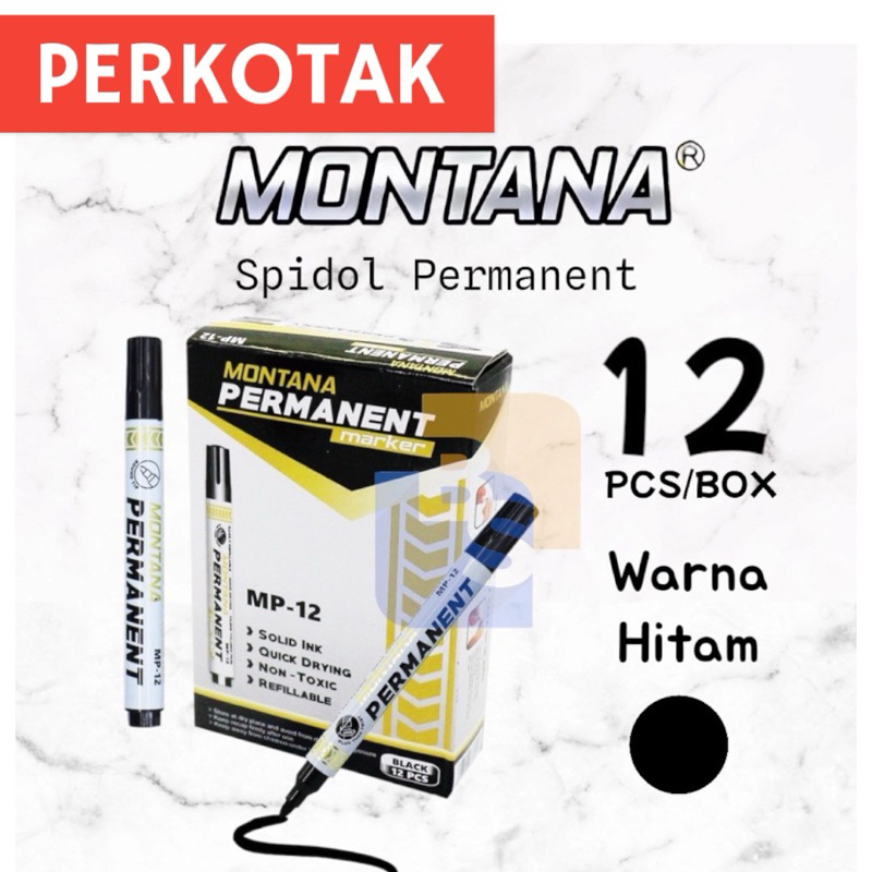12 Pcs - MONTANA Spidol Permanent (MP-12)- HITAM