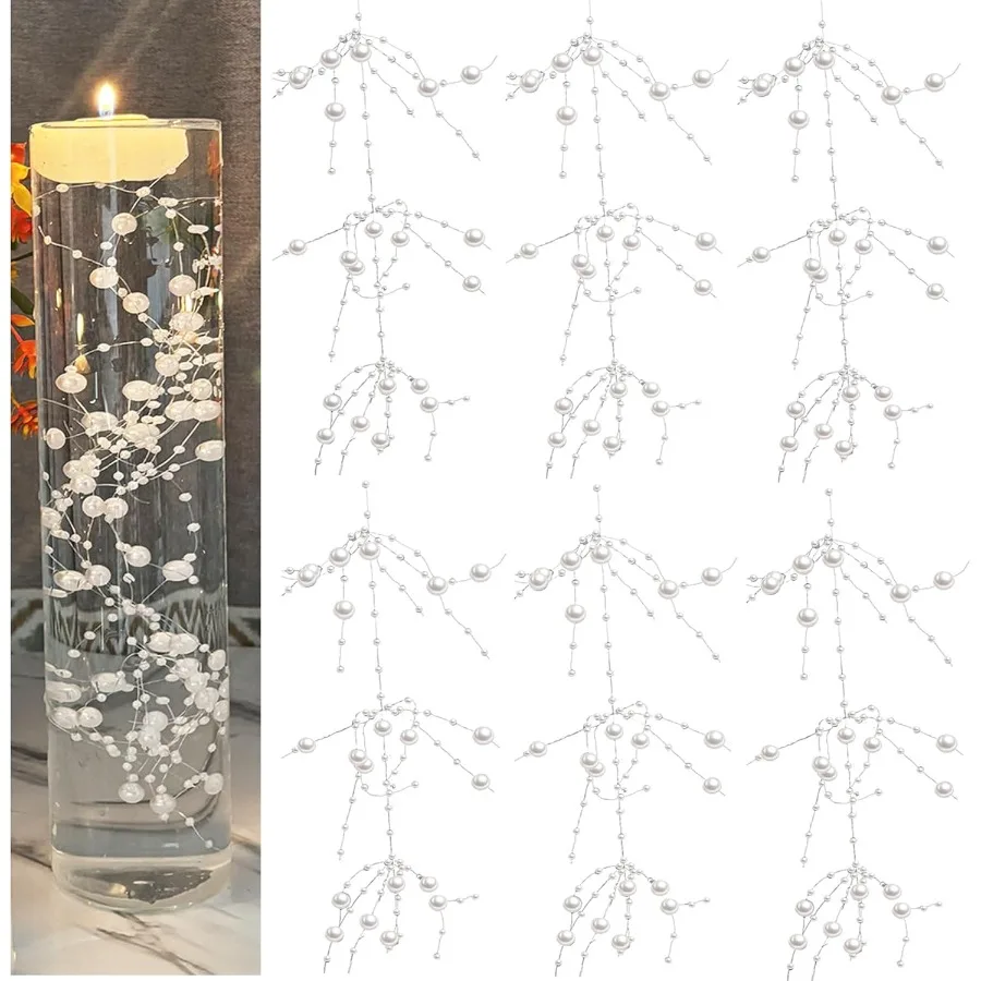 12 Pcs Pearl String Set for Floating Candles Centerpiece White Faux Pearl Beads Vase Filler for Wedding Table Christmas Tree De