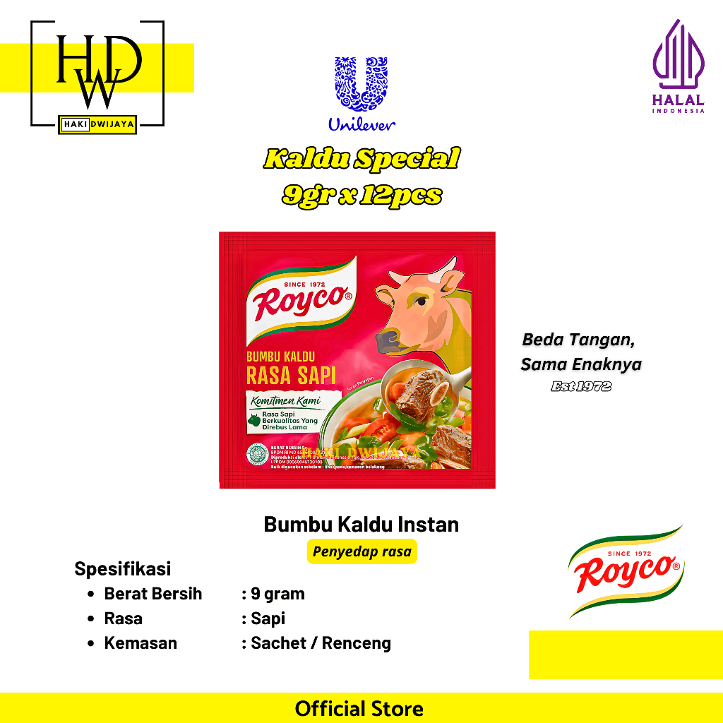 Royco Rasa Sapi 9g (12 pcs) adalah bumbu kaldu spesial yang dibuat dengan daging sapi asli pilihan, dengan ekstrak daging lebih mantap dan rasa asin, gurih, dan bumbu yang lebih seimbang. Diolah dengan teknologi tinggi dan higienis hingga menghasilkan bumbu kaldu yang berkualitas untuk kaldu buatan di rumah.