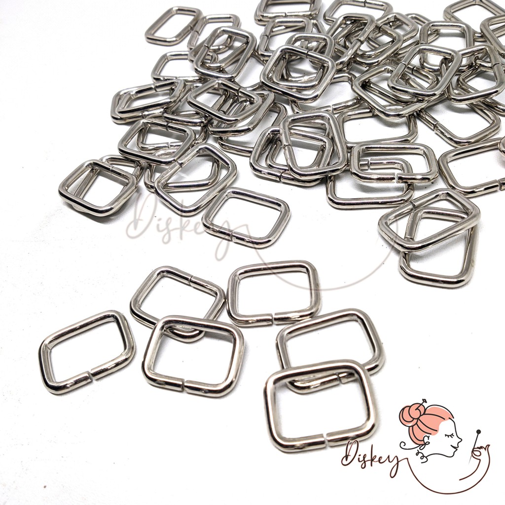 12 SET RING KOTAK BESI 15 MM / RING KOTAK PENGAIT TALI TAS WARNA NIKEL RK15