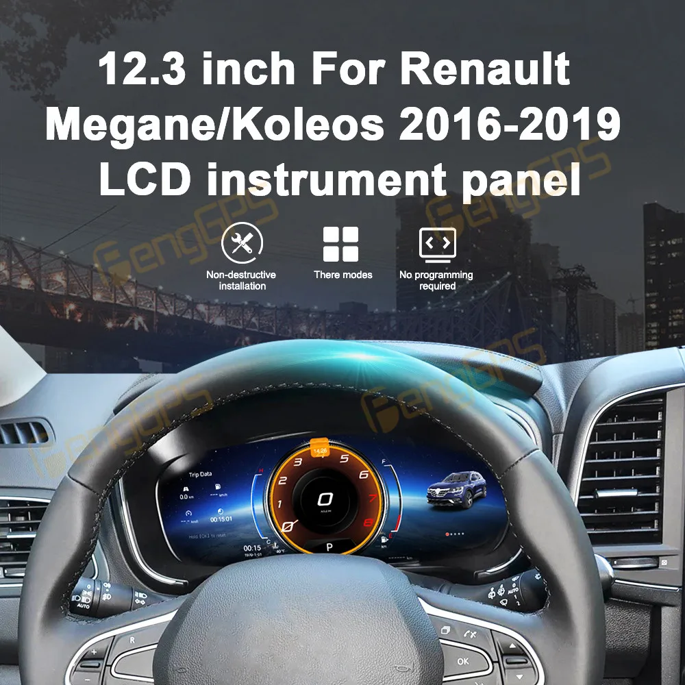 12.3" Digital Cluster Odometer Screen For Reno Megana 4 2016-2019 LCD Instrument Panel Virtual Cockpit Speed Meter Car Dashboard