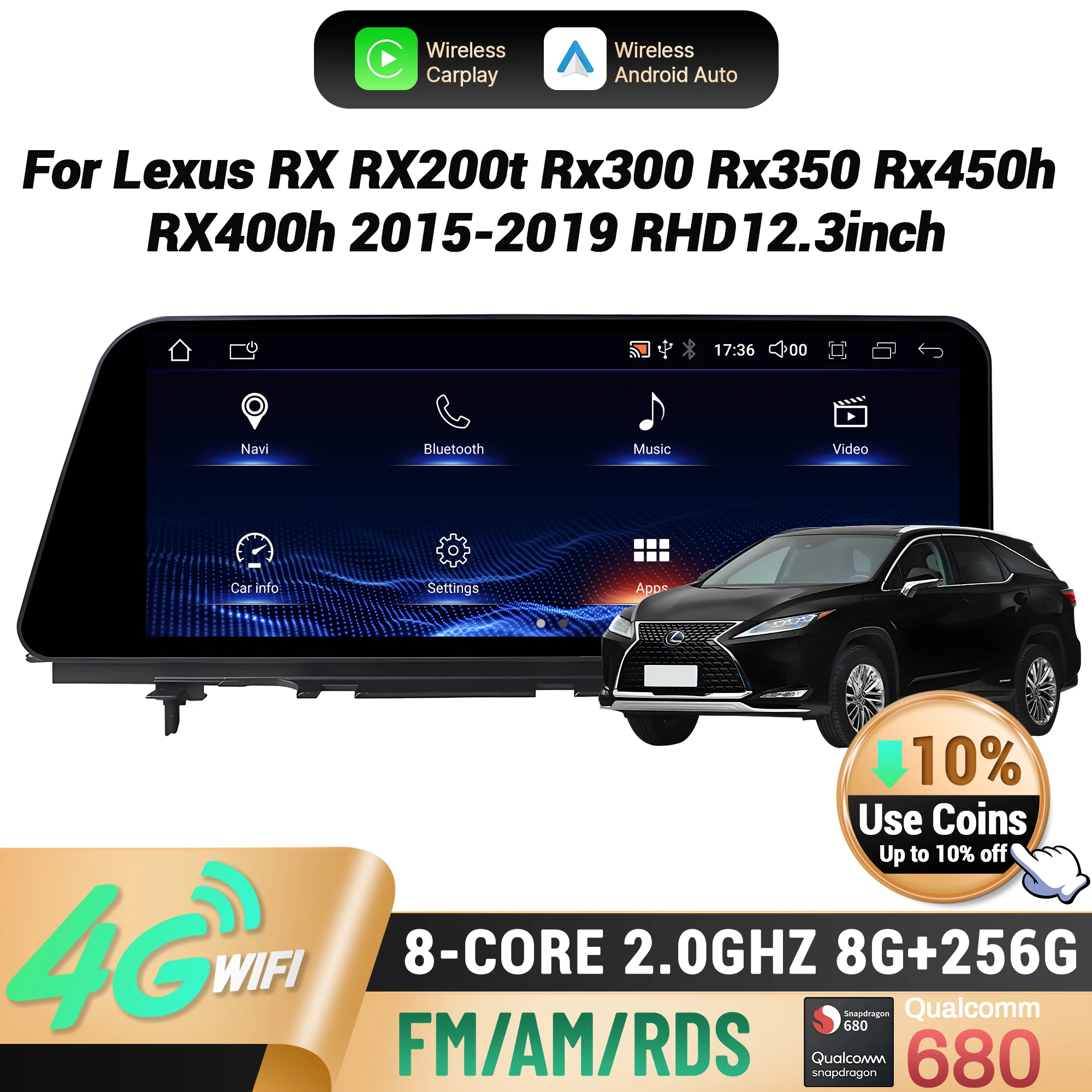 12.3" RHD For Lexus RX RX200t Rx300 Rx350 Rx450h RX400h 2015-2019 Car Radio Wireless CarPlay Multimedia Snapdragon 680 Screen