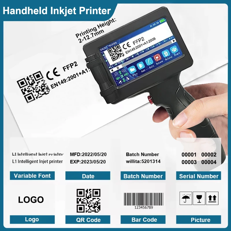 12.7mm Label Printers Mini Handheld Inkjet Printer Portable QR Bar Batch Code Date Number Logo Expiry Date Coding Machine