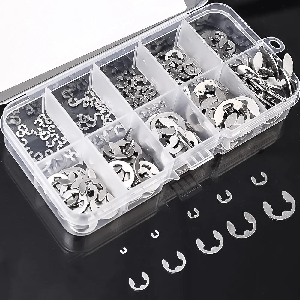 120 шт. нержавеющая сталь E-образные зажимные шайбы кольца защелкивающиеся стопорные кольца крепление вала M1.5 M2 M3 M4 M5 M6 M7 M8 M9 M10 набор