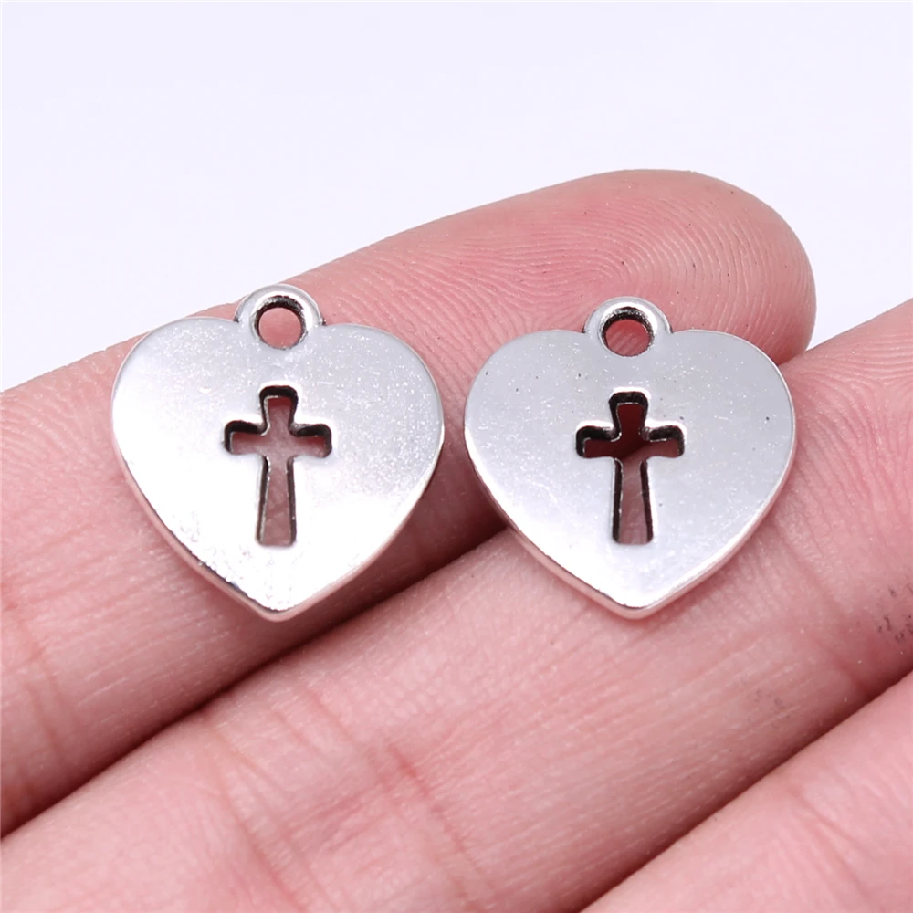 120 шт. подвески оптом 17x16 мм Подвески с крестом в форме сердца оптовая продажа Сделай Сам ювелирные изделия фурнитура под античную кожу оптовая продажа