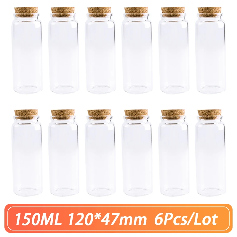 120*47 мм 150 мл маленькие стеклянные бутылки, пробка, поделки, банки, мини прозрачные пустые стеклянные бутылки «сделай сам», маленькие банки, 6 ...