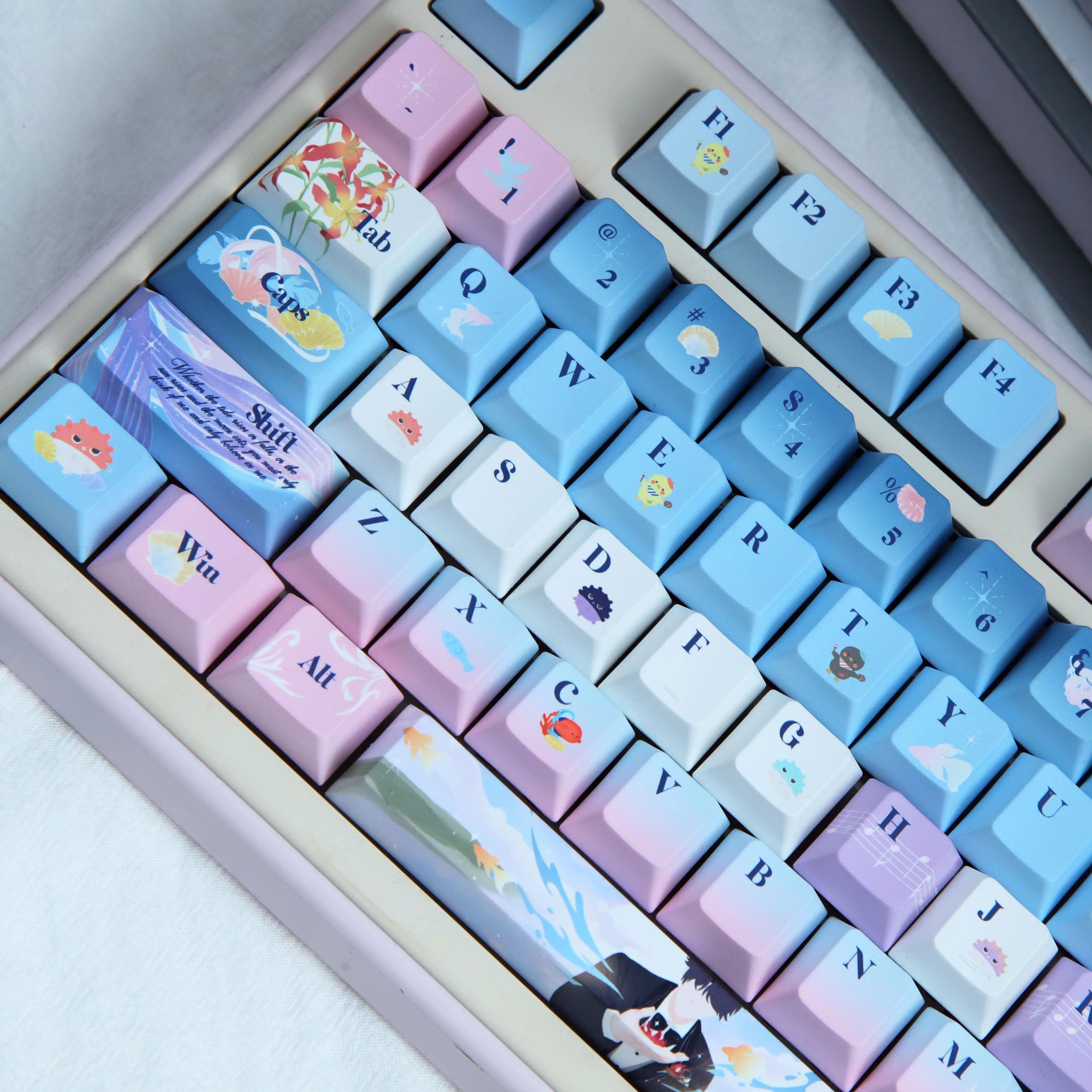 120 Keys Love and Deepspace Rafayel Keycaps Blue Pink Cherry MOA Side Translucent PBT Five-sided Dye-Sub Customized Key Cap