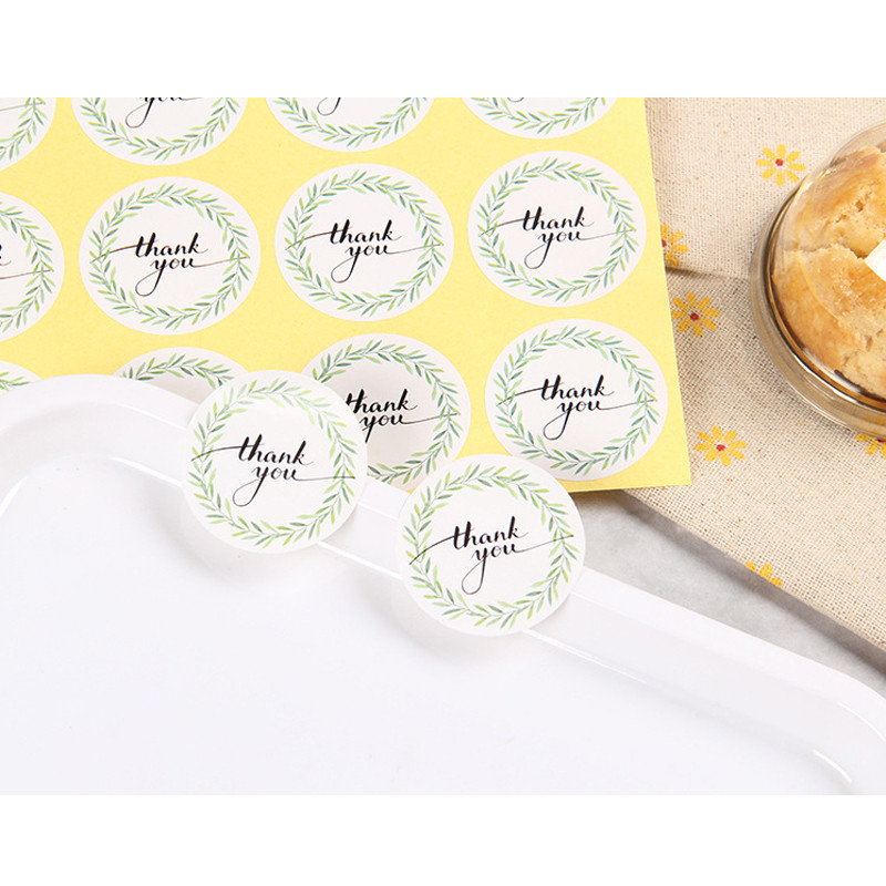 120Pcs/pack Green Leaf Wreath pattern Label Hand Made With Thank You Sticker Baking Gift Sealing Stickers