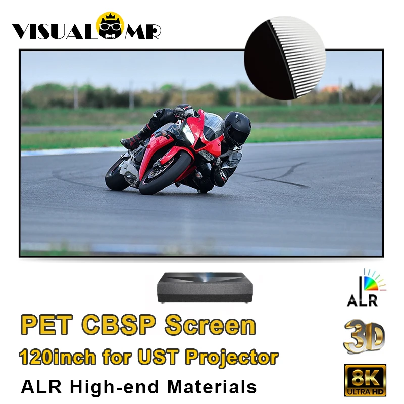 120inch Top PET CBSP Crystal ALR UST Projection Screen Ambient Light Rejecting High-End 8K Ultra Short Projector 1cm Fixed Frame