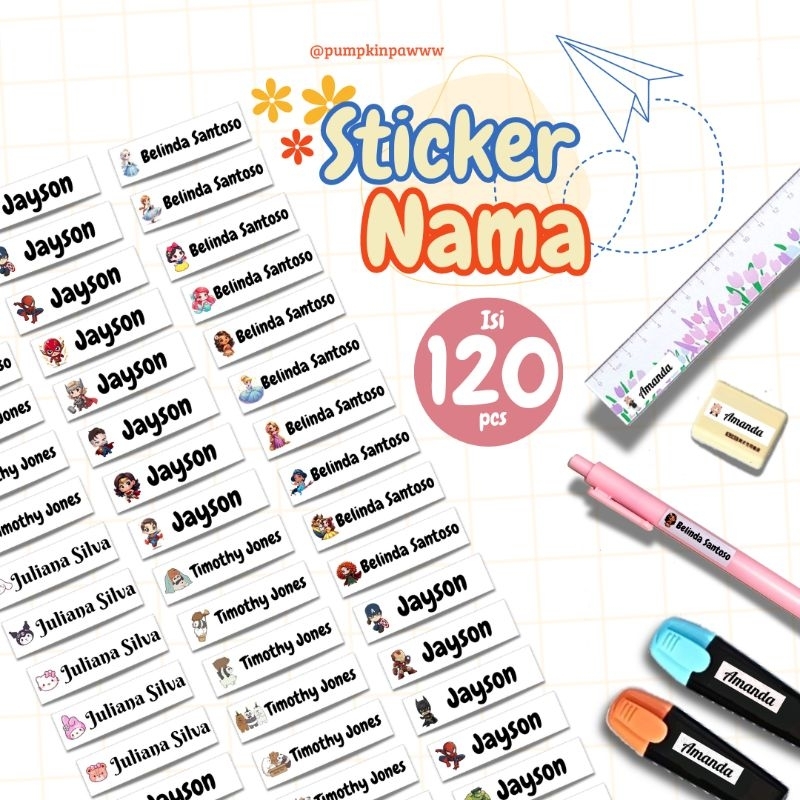 (120pcs)Sticker Label Nama Custom/Stiker Label Nama Waterproof
