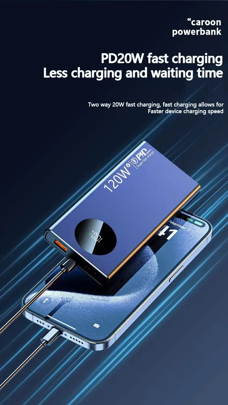 120w New Super Fast Charging 50000mah Power Bank Ultralarge Capacity For Mobile Power External Battery For Iphone Xiaomi Samsung