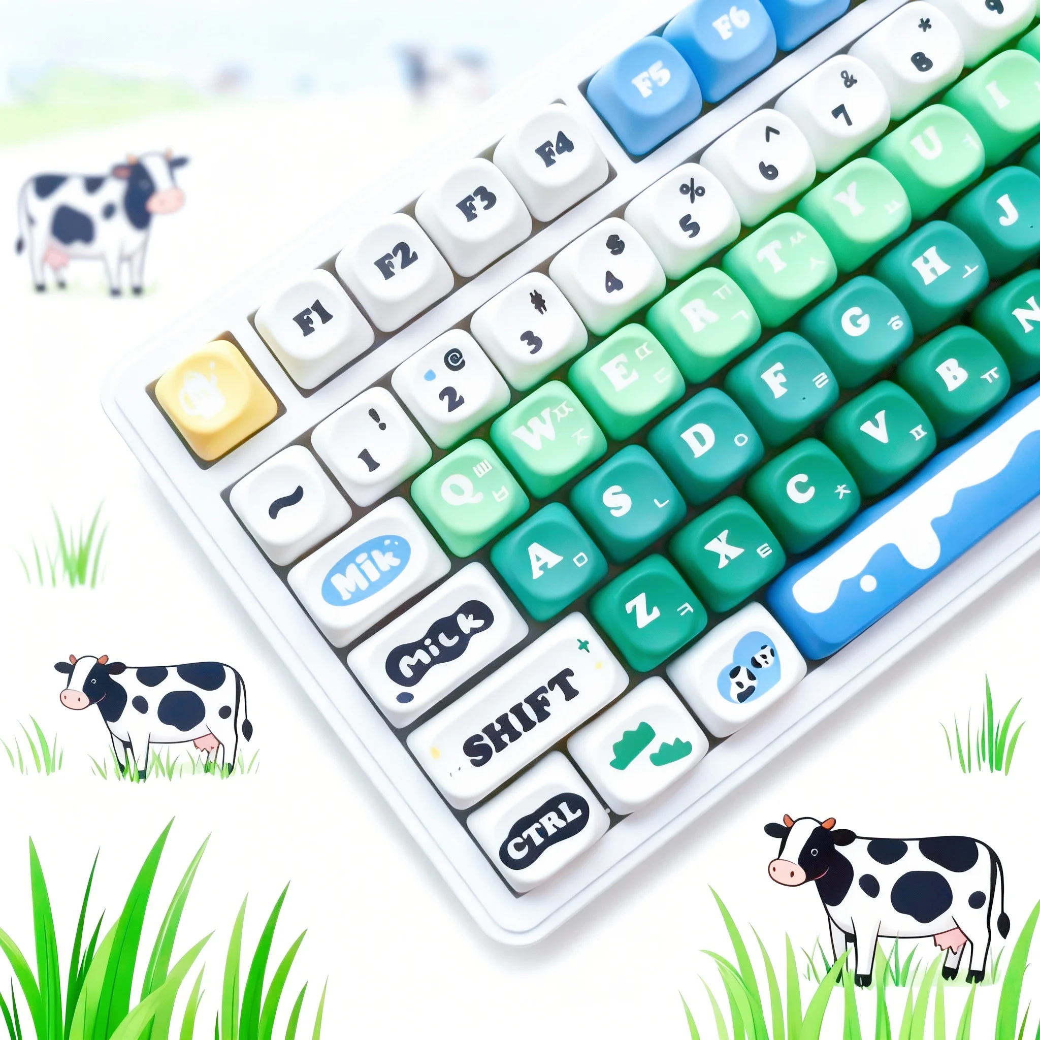 125-клавишная колпачок из ПБТ с профилем молочной коровы, корейская, немецкая, английская, на заказ, милая, сублимационная, колпачок для игровой клавиатуры MX Swithes