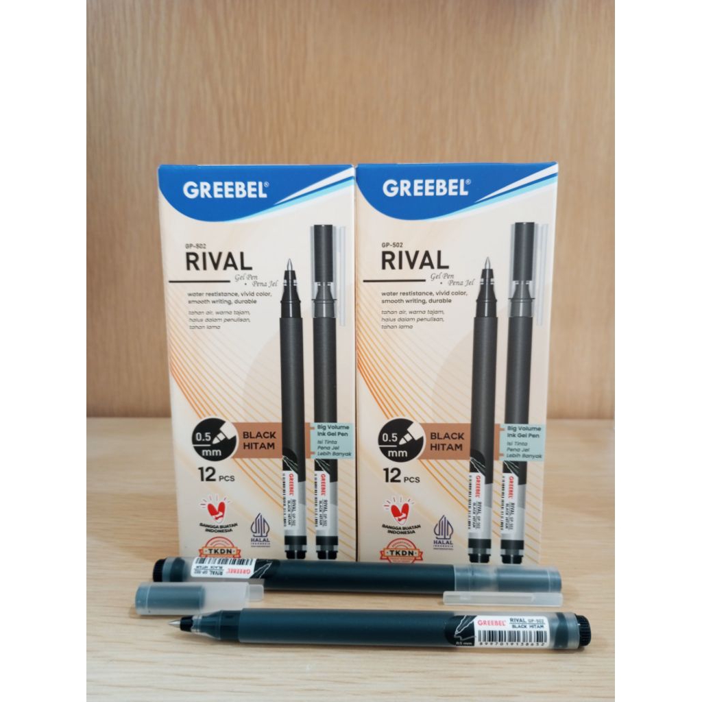 (12PCS) PULPEN GREEBEL RIVAL 0,5 HITAM PACK