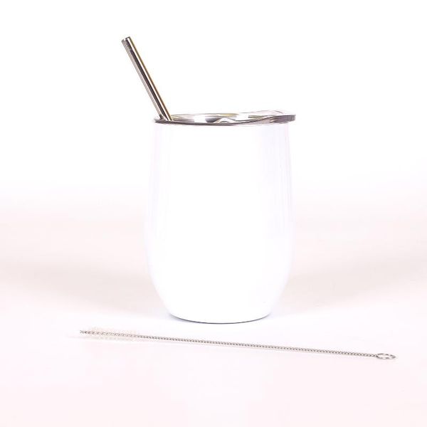 12oz blank sublimation coating stemless 304 stainless steel wine glass egg shape water cup tumblers with lid bottles