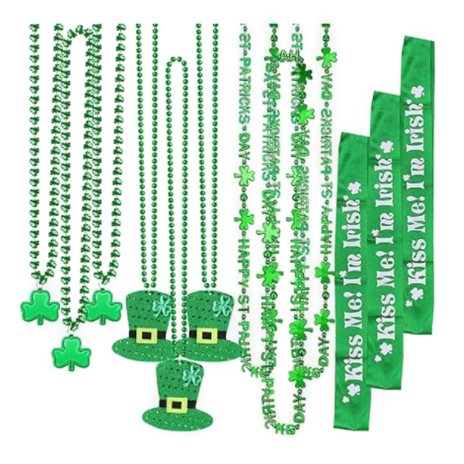 12x ул.. Комплект аксессуаров ко Дню Святого Патрика, ожерелья с зеленым клевером, бретели для ирландской вечеринки, аксессуары для костюма