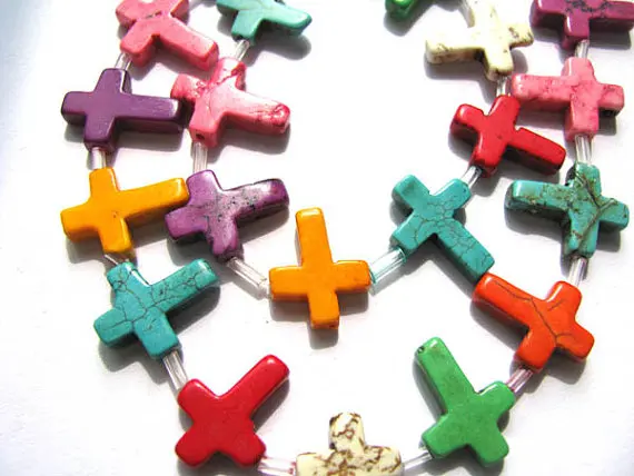 12x16 мм 5 нитей, оптовая продажа бирюзовых полудрагоценных крестов Розовый Желтый Красный Фиолетовый Синий Черный Белый Ассорти ювелирных из...