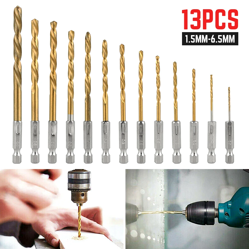 13 шт./компл. набор сверл HSS с титановым покрытием для металлических электроинструментов аксессуары для сверл 1/4 "с шестигранным хвостовиком ...
